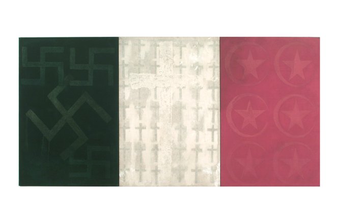 tecnica mista su tre tele con velatino